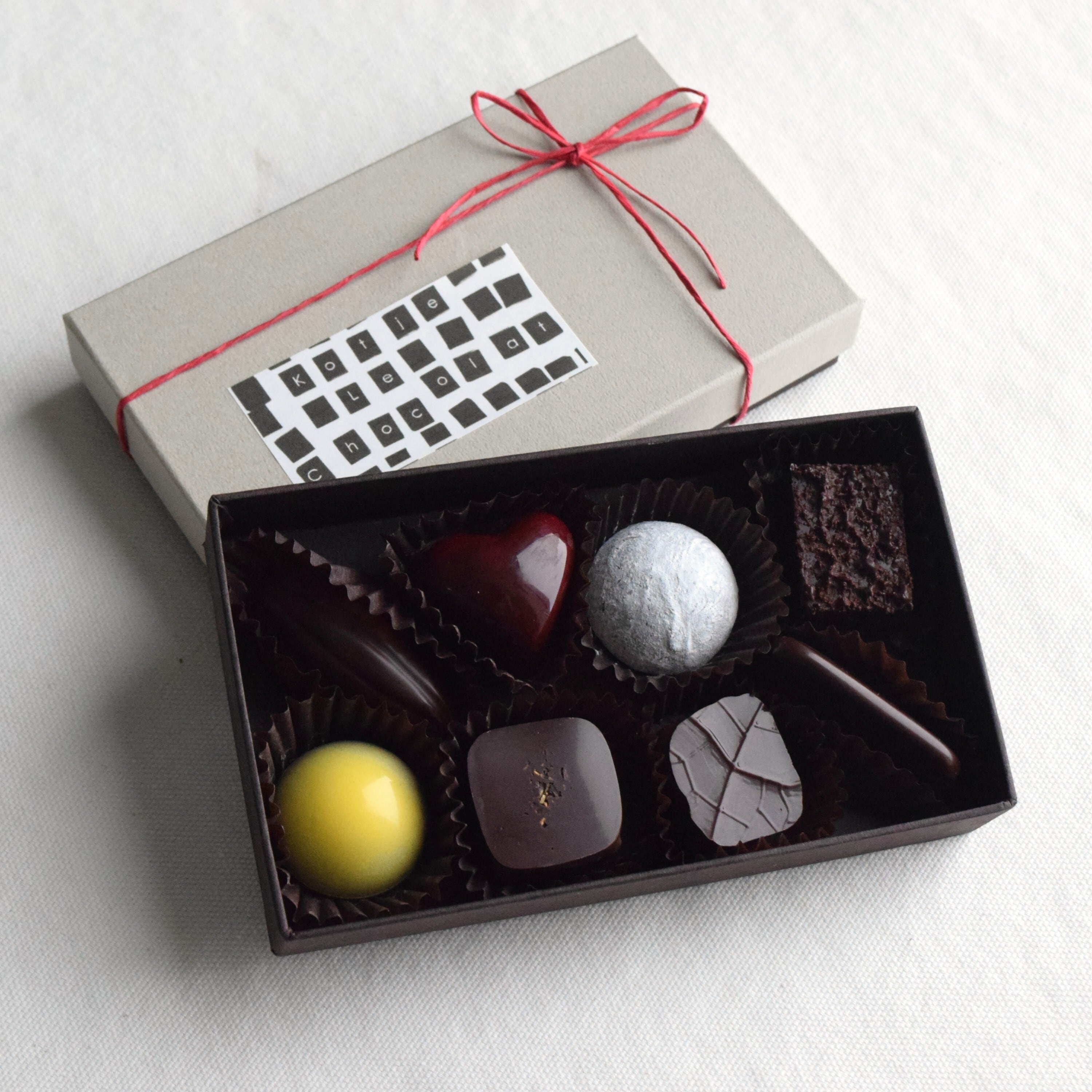 フルーティーなベトナムのカカオ豆からボンボンショコラになるまで、一つ一つ丁寧に手作りしております。カカオ本来の風味と様々な食材を組み合わせた、個性的なショコラを詰め込んだKotjeのショコラボックス。